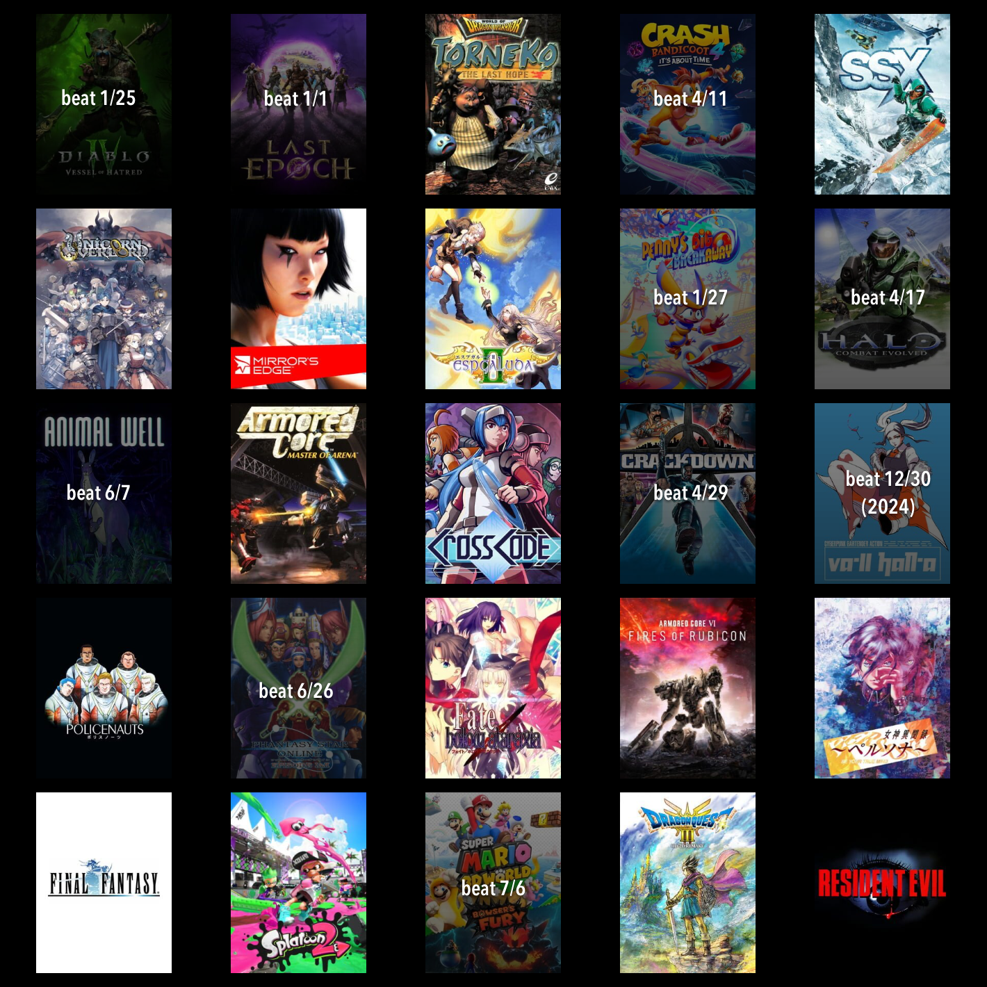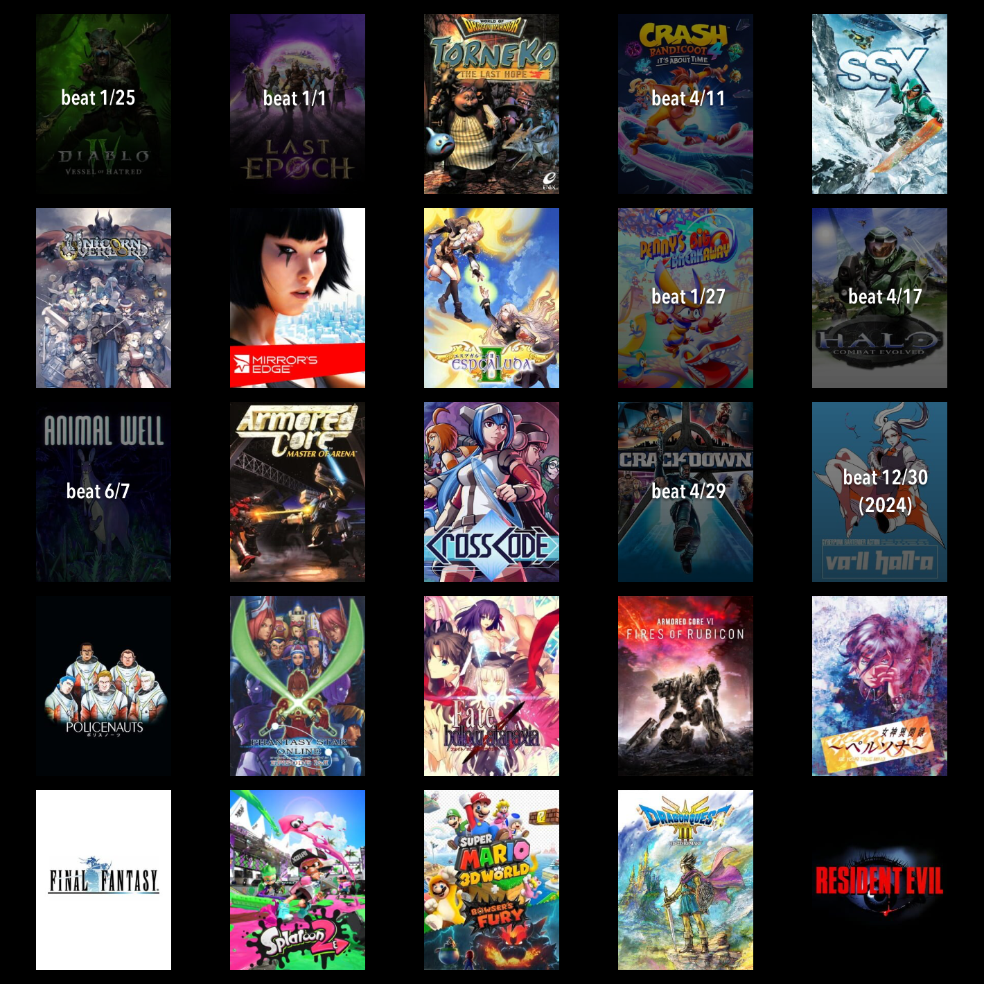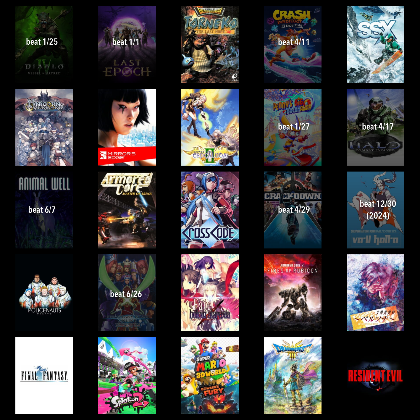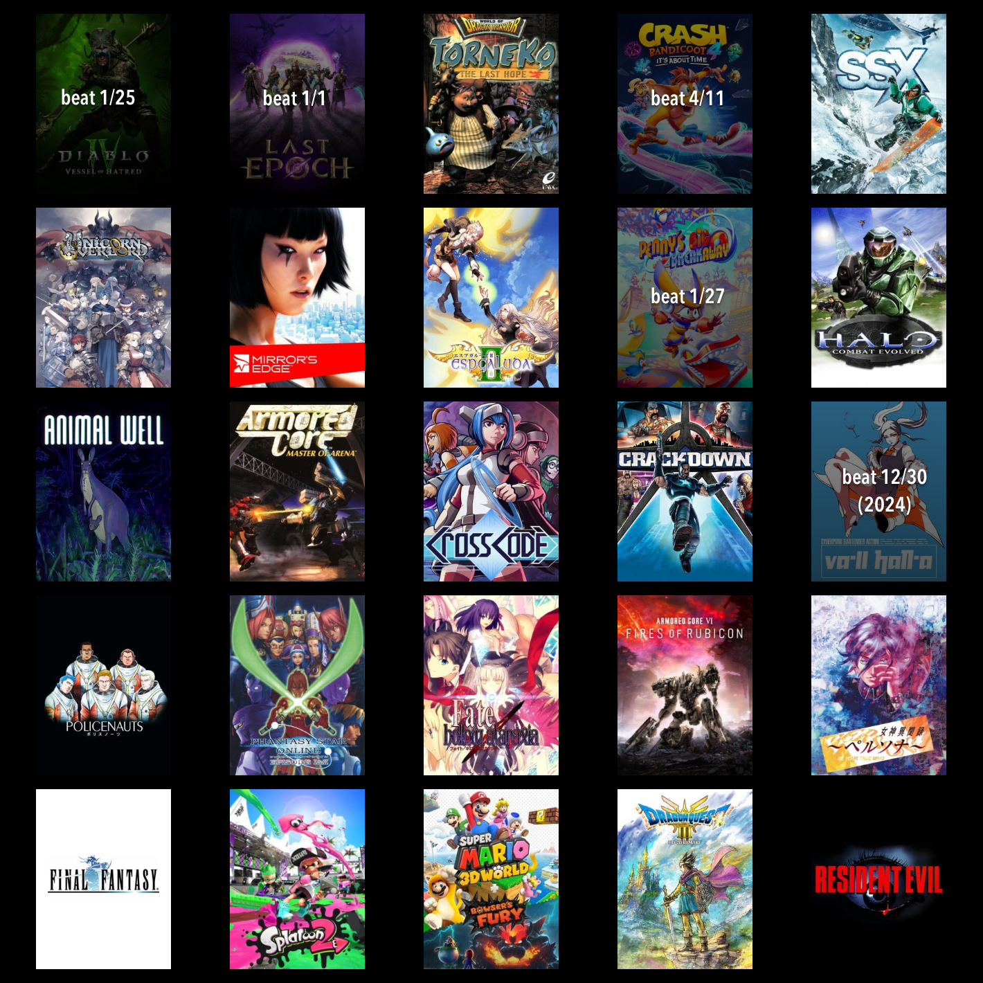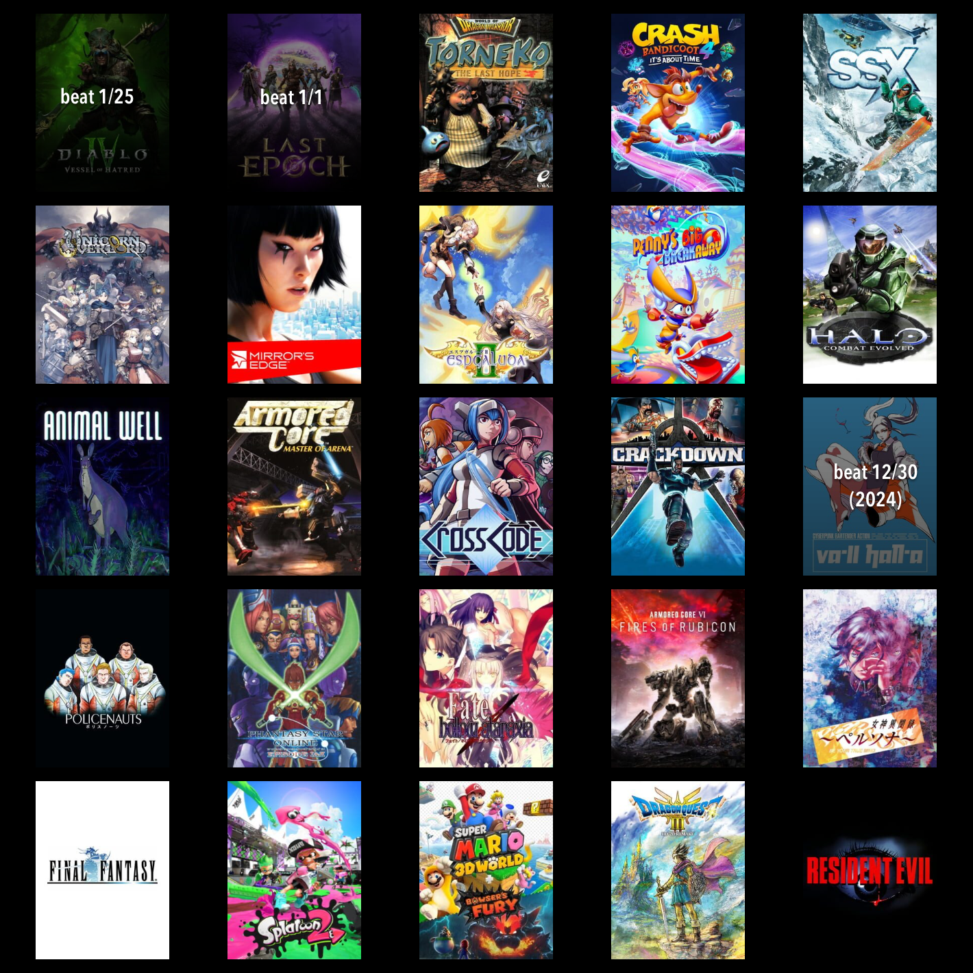 - 1/25: Diablo IV: Vessel of Hatred has such an anticlimactic ending that I didn’t realize I was actually beating it. Spiritborn has more interesting customization options, but then the bread and butter combat feels indistinguishable from base game classes. Somewhat disappointed with this one.
